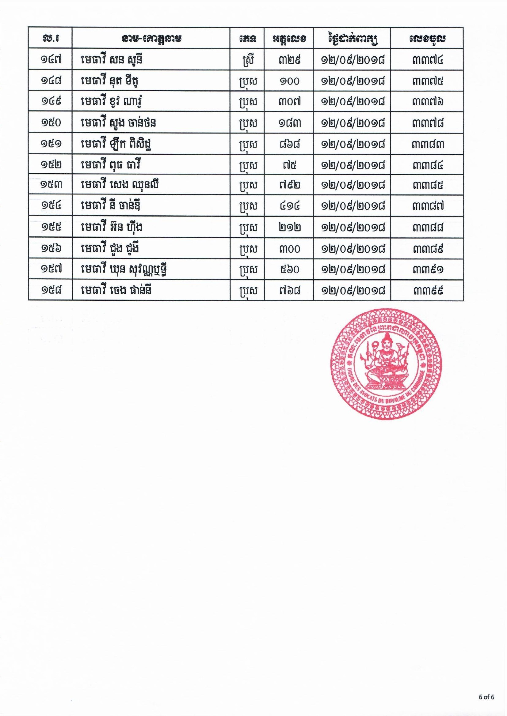 សេចក្តីជូនដំណឹងស្តីពីការទទួលស្គាល់បេក្ខជនឈរឈ្មោះប្រធានគណៈមេធាវី អាណត្តិទី ១២ (២០១៨-២០២០) និង បេក្ខជនឈរឈ្មោះក្រុមប្រឹក្សាគណៈមេធាវី អាណត្តិទី ៩ (២០១៨-២០២១)