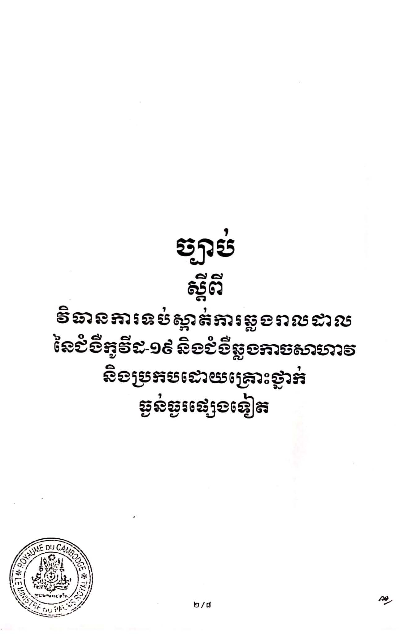 ច្បាប់ស្តីពីវិធានការទប់ស្កាត់ ការឆ្លងរាលដាលនៃជំងឺកូវីឌ-១៩ និងជំងឺឆ្លងកាចសាហាវ និងប្រកបដោយគ្រោះថ្នាក់ ធ្ងន់ធ្ងរផ្សេងទៀត។