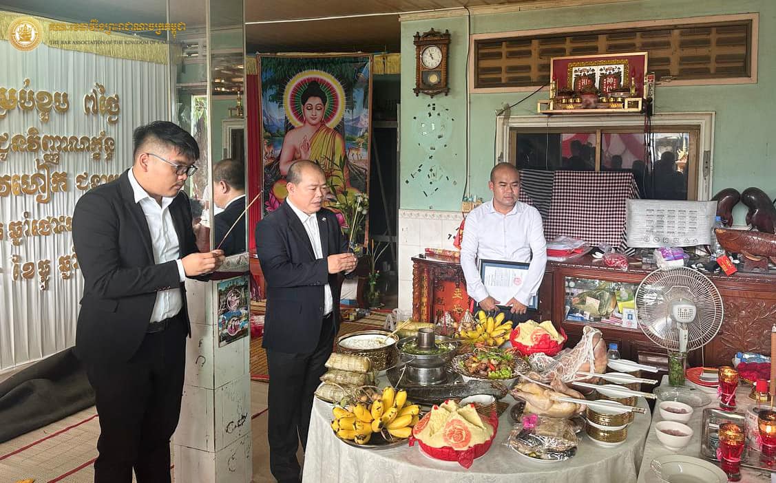 ឯកឧត្តម លី ច័ន្ទតុលា ប្រធានគណៈមេធាវីនៃព្រះរាជាណាចក្រកម្ពុជា បានចាត់លោកមេធាវី កែវ ពេជ្ជនៈ សមាជិកក្រុមប្រឹក្សាគណៈមេធាវីនៃព្រះរាជាណាចក្រកម្ពុជា ទៅចូលរួមពិធីបុណ្យខួបគម្រប់ ៧ថ្ងៃ សពឧបាសិកា ឡេង ឈីវហៀក ដែលត្រូវជាជីដូនបង្កើតរបស់លោកមេធាវី ស៊ិន គឹមឈាង