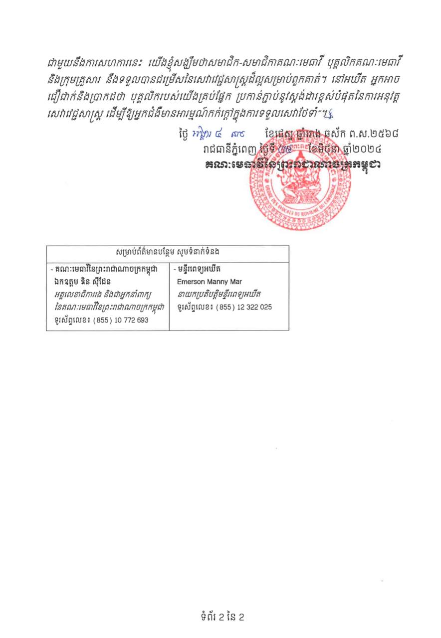 សេចក្តីប្រកាសព័ត៌មាន ស្តីពី ការចុះអនុស្សរណៈនៃការយោគយល់គ្នារវាង គណៈមេធាវីនៃព្រះរាជាណាចក្រកម្ពុជា និងមន្ទីរពេទ្យអឃីត